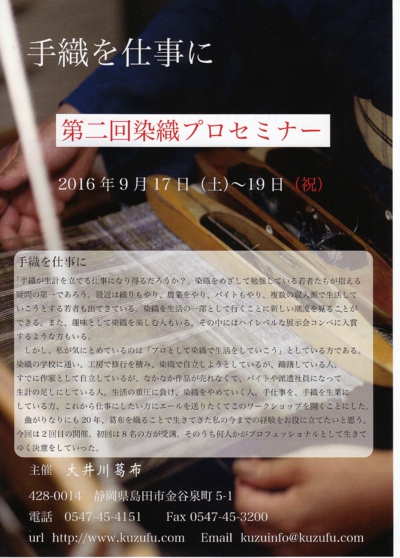 このセミナーを受けることで 開業準備万端というわけではありません。たかだか3日のセミナーですが、染織で生きていくために必要な知識 足りない知識が何なのか判ってもらうこと、染織で生きてゆく覚悟、そして手仕事の将来性などの をお伝えできればと思っています。