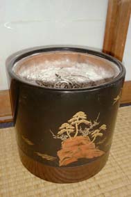 夏場も蚊取り線香台として活躍した。特に蒔絵の火鉢は秀逸。床の間の部屋の客用手あぶりとして活躍してもらう予定。